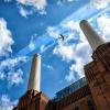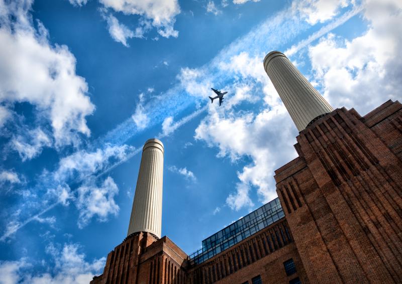 What a great capture Maggie I love the colours this is so vibrant and the aircraft framed by two of the Battersea Power station towers.